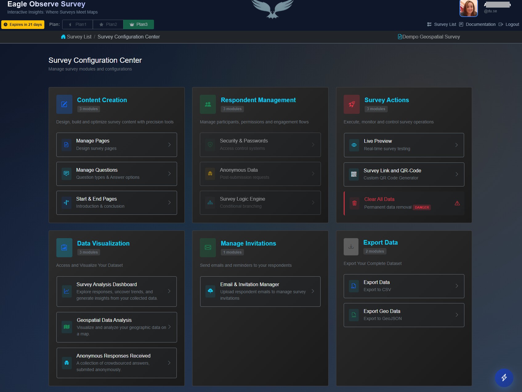 This is your survey’s control room. Within this streamlined interface, you have complete command over the entire survey lifecycle through four core pillars: